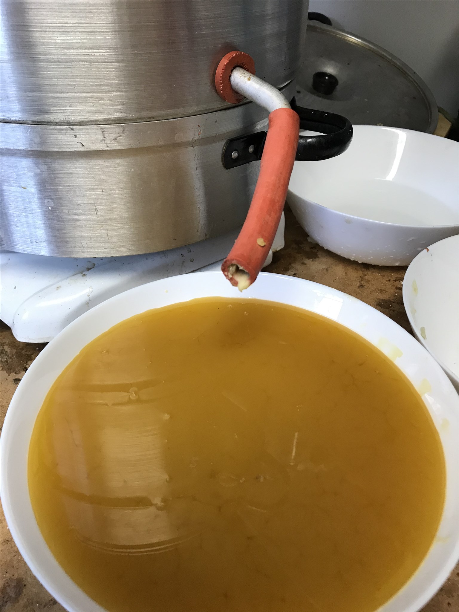 Vaxsmältning hör hösten till. Här är det täckvax som ska smältas för användning till bivaxsalva.