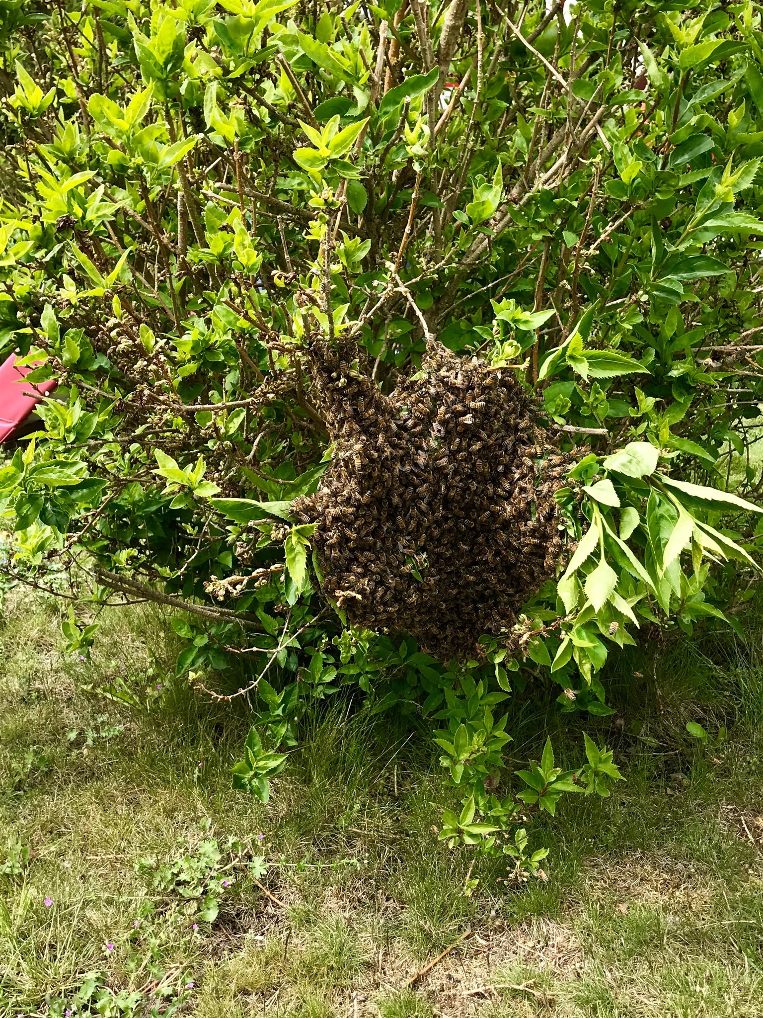 Tack o lov satt svärmen lågt i en buske och det var lätt att ta den men det tog ju extra tid för oss...och varmt var det...