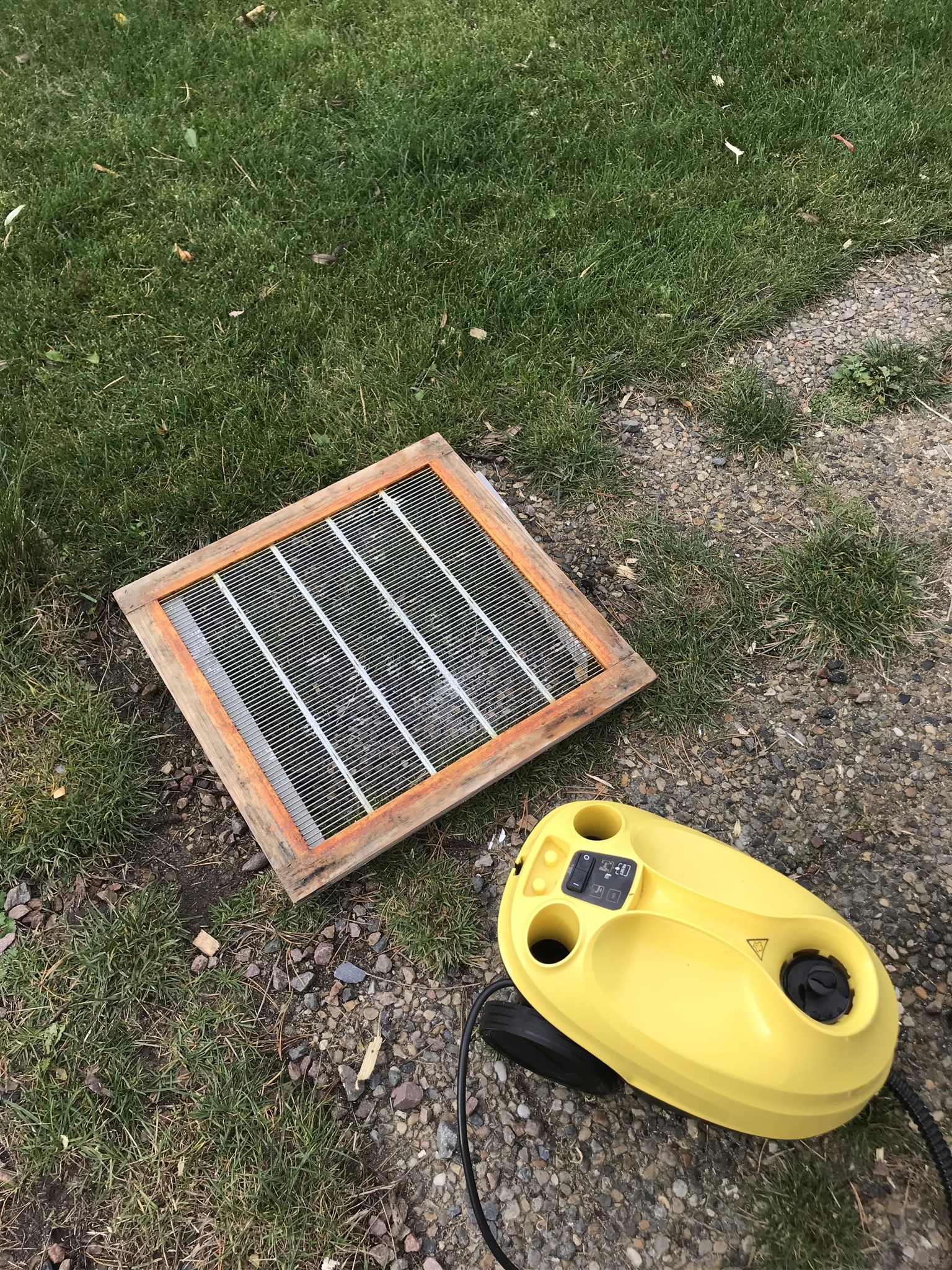 Spärrgallerna används ju inte på vintern så de ska också rengöras. I år testade jag att använda vår ångtvätt och det gick väldigt snabbt och bra.